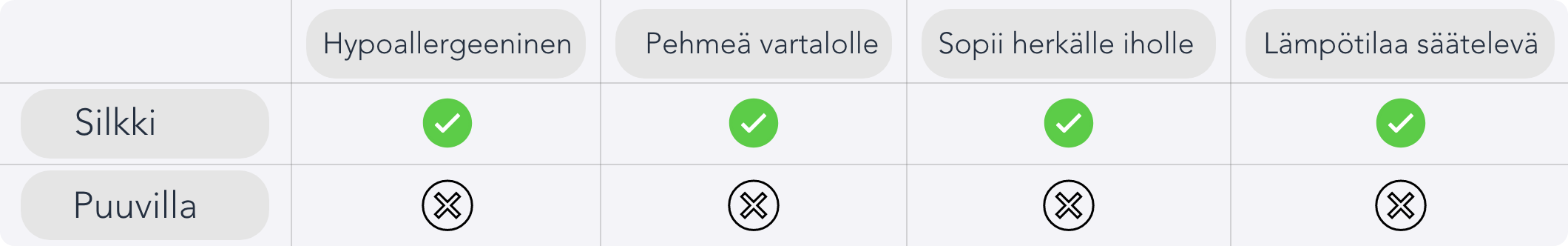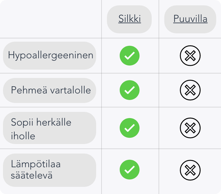 Tuotteemme on valmistettu 100% luonnonsilkistä, jotta saat ensiluokkaista mukavuutta jokaiseen päivään.