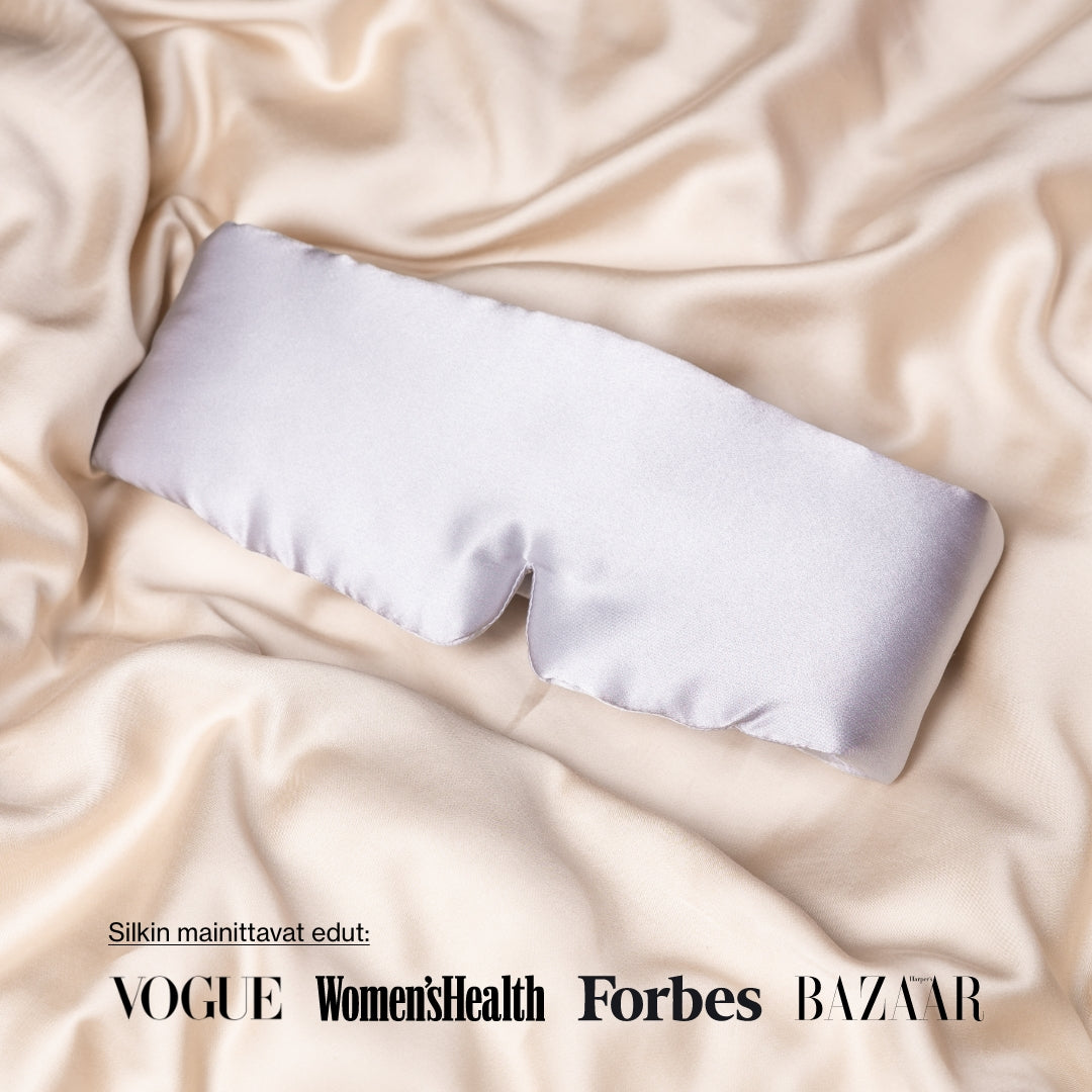 Noreon syvän unen maski on valmistettu 6A luonnollisesta mulperinsilkistä, kuten useimmat Noreo-tuotteet.