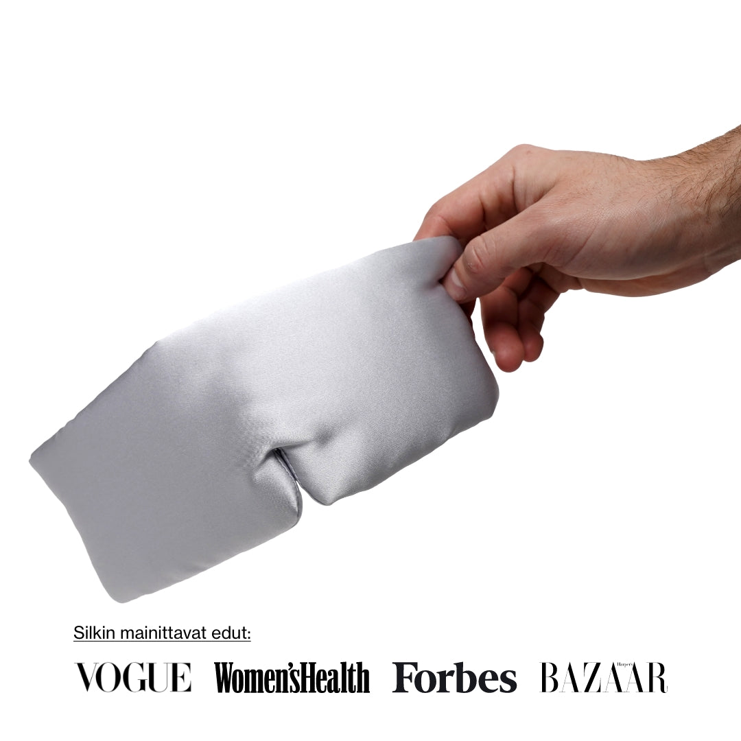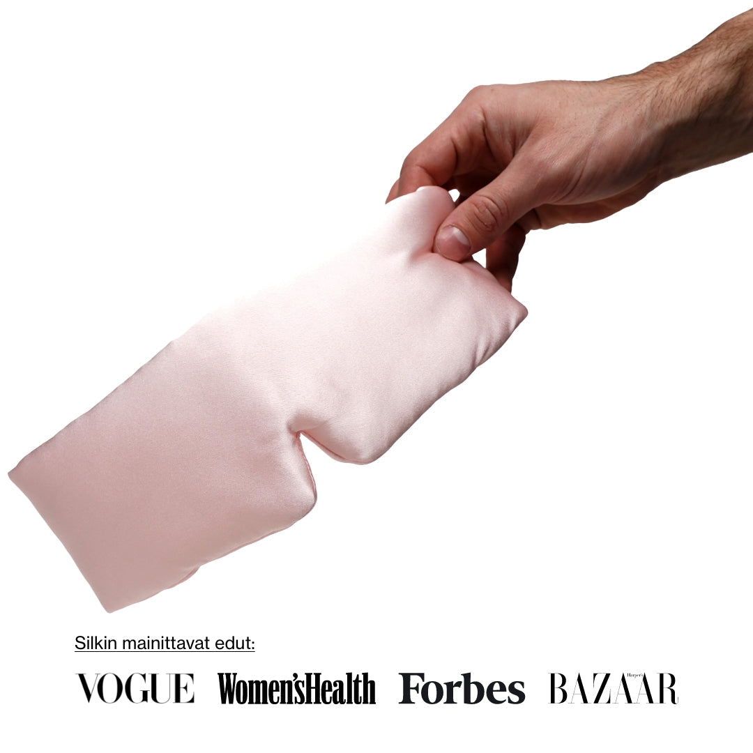 Suosittelemme pesupussin ja PH-neutraalin nestemäisen pesuaineen käyttöä. Käytä pesukoneessa hellävaraista ohjelmaa tai pese unimaski käsin. Kuivaa se ilmassa. Älä käytä kuivausrumpua, sillä se voi vahingoittaa materiaalia.