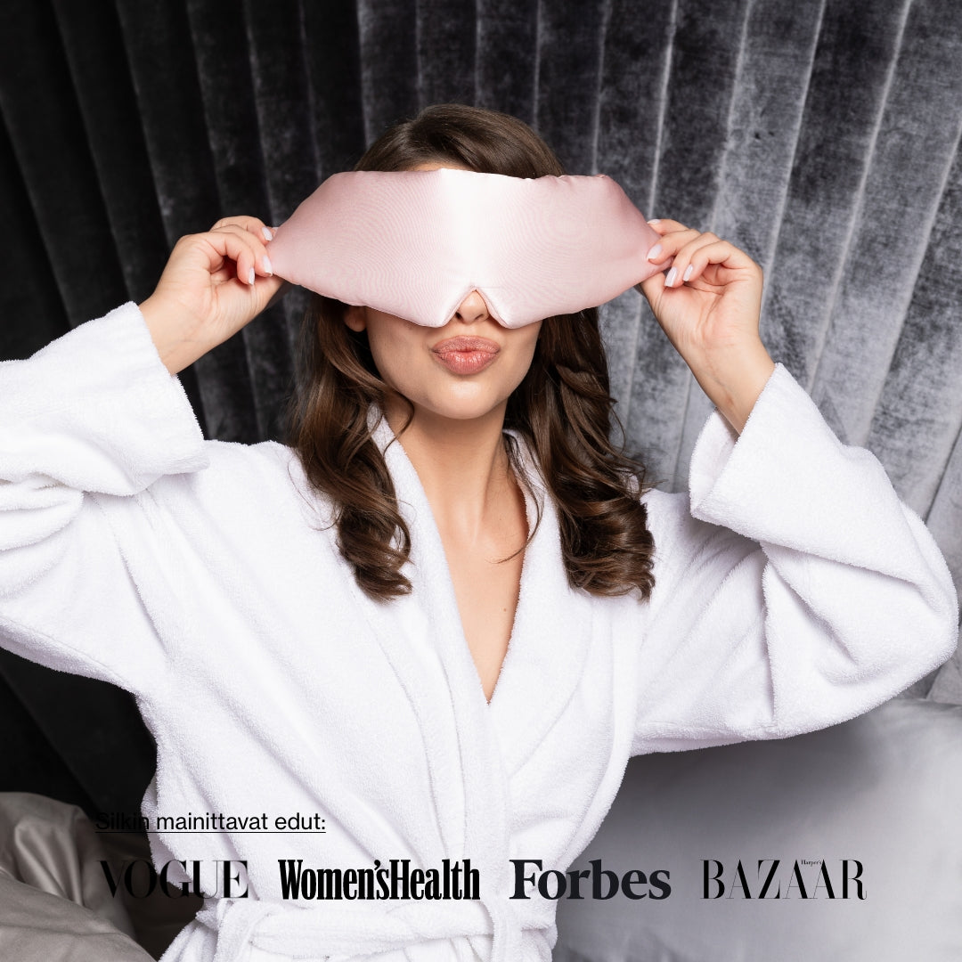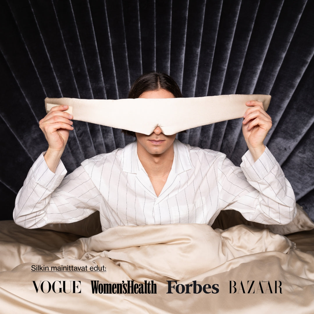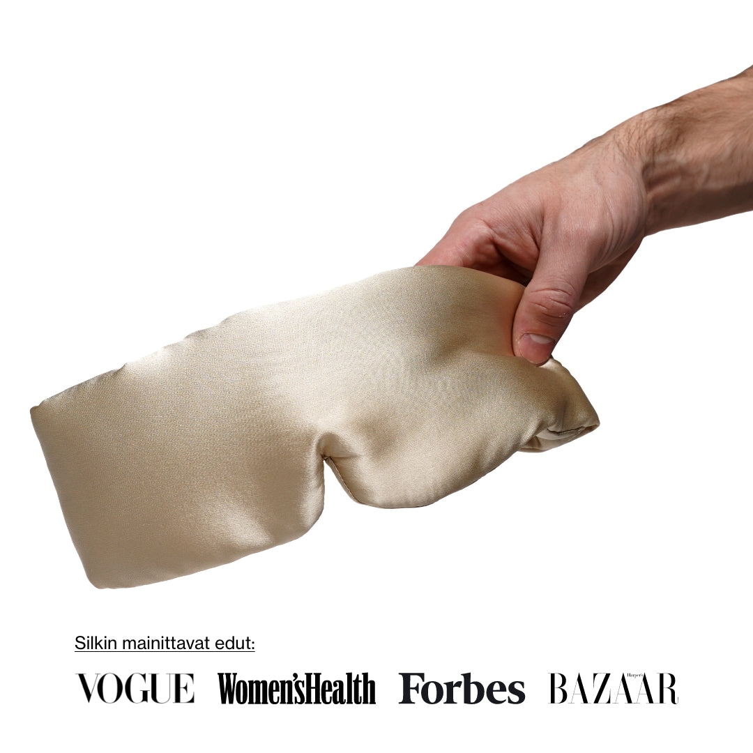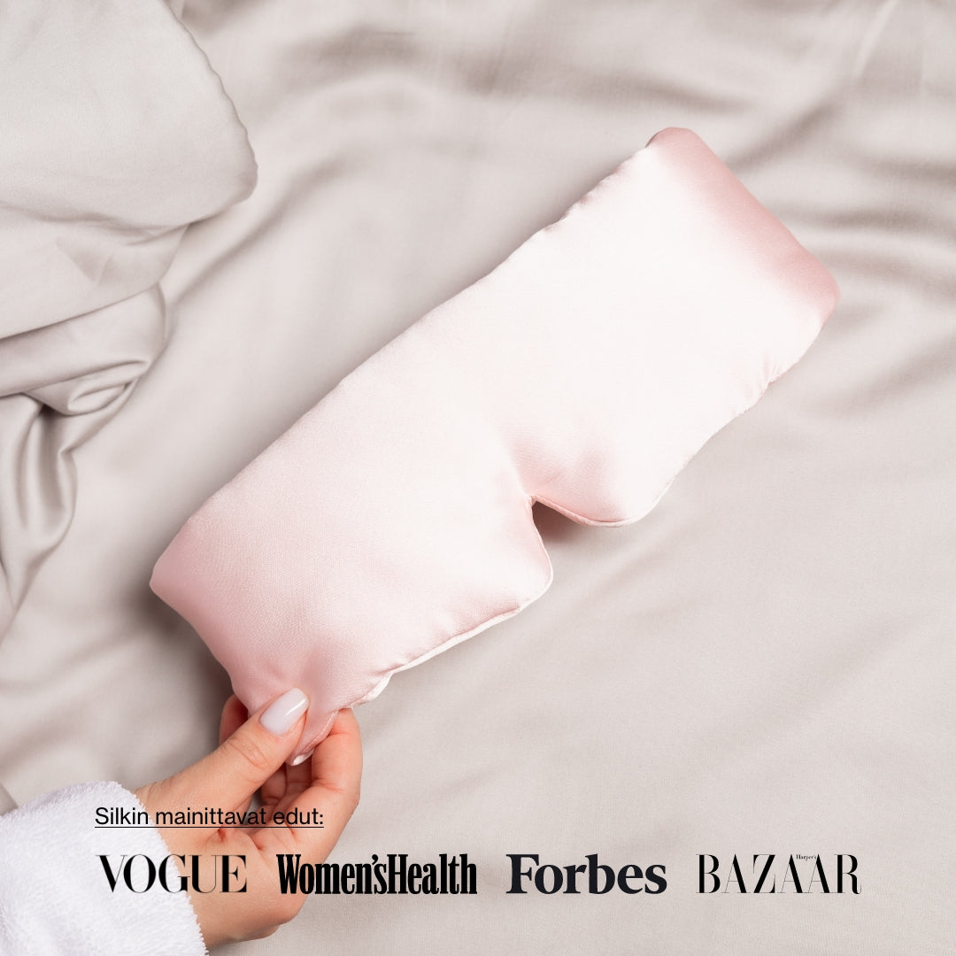 Noreon syvän unen maski on valmistettu 6A luonnollisesta mulperinsilkistä, kuten useimmat Noreo-tuotteet.