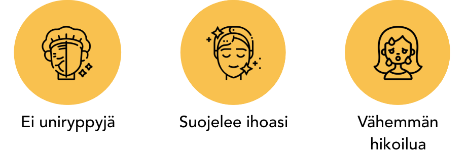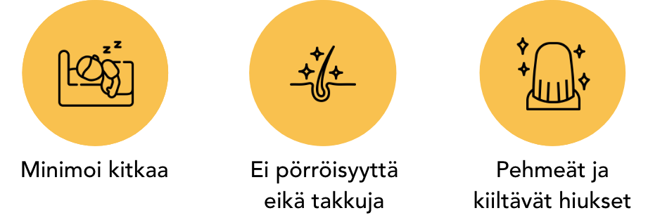 Yksi silkin tärkeimmistä ominaisuuksista on hiusystävällisyys. Vähemmän sotkeutumista ja katkeilua. Pehmeyttä ja kiiltoa aamuisin.