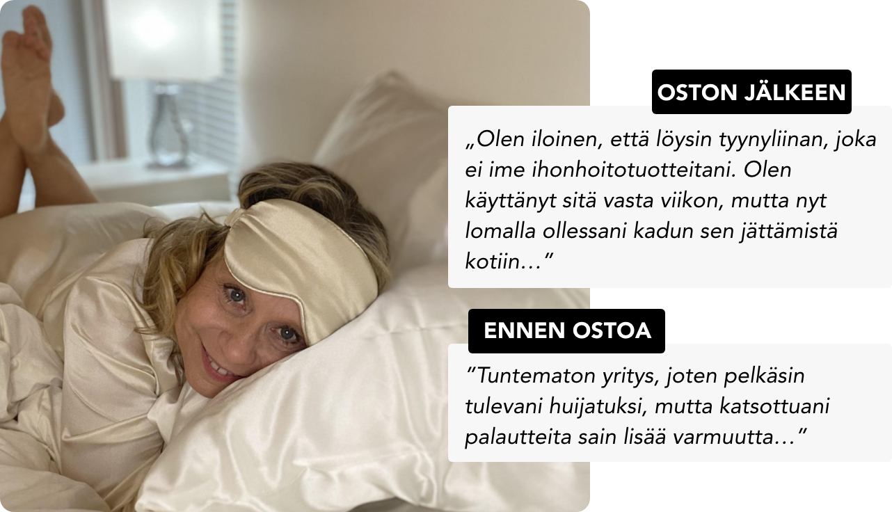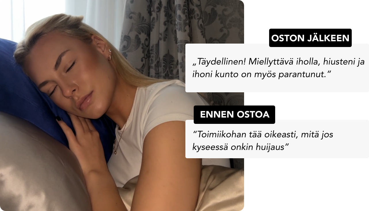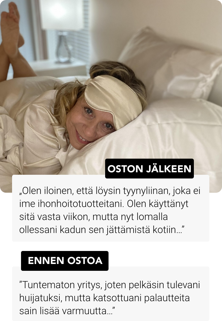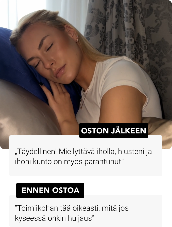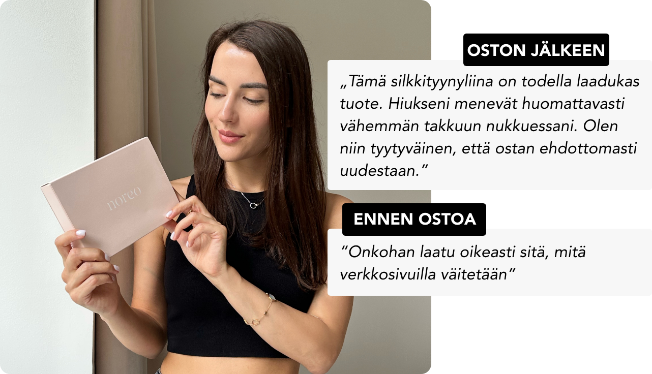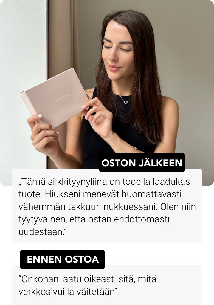 86% asiakkaistamme ovat huomanneet vähemmän uniryppyjä ja hiusten pörröisyyttä käytettyään Noreoa 4 yötä!