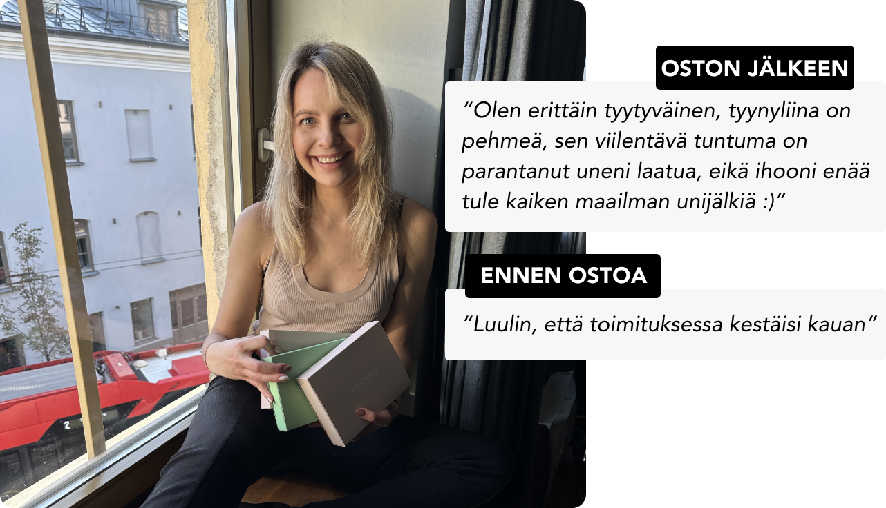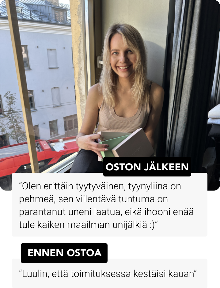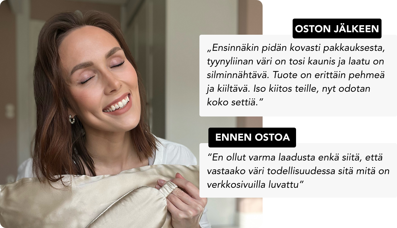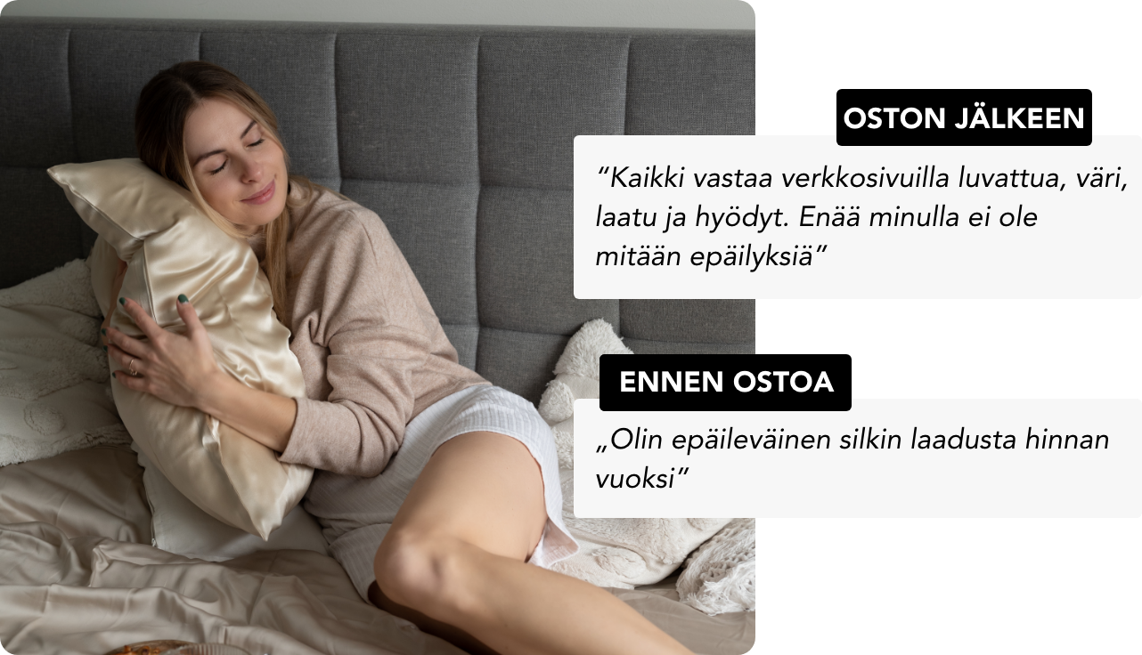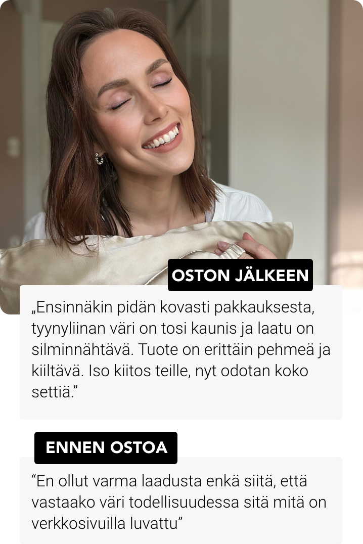 86% asiakkaistamme ovat huomanneet vähemmän uniryppyjä ja hiusten pörröisyyttä käytettyään Noreoa 4 yötä!